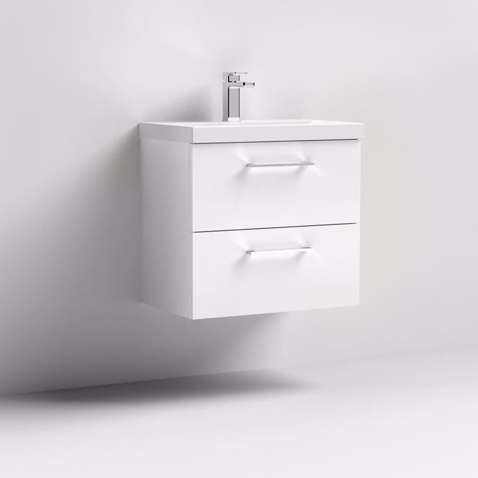 Chester 600MM 2 Drawer Wall Hung Vanity Unit In White
